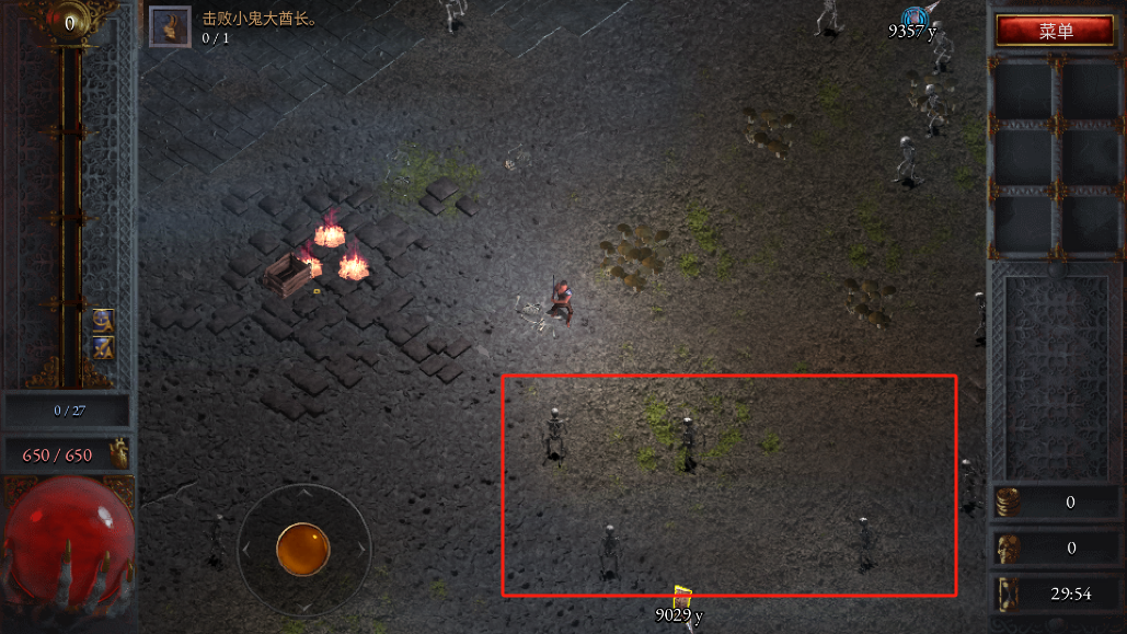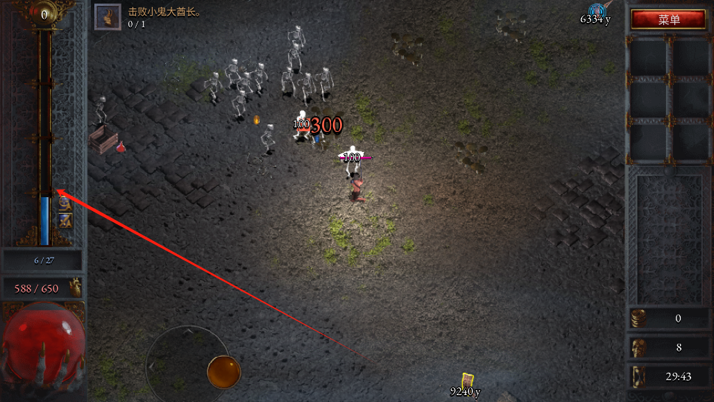 4、当您感觉角色属性已足够强大,便可以开始闯关冒险了。您的主要任务是消灭蜂拥而至的骷髅怪,清除前方的阻碍。