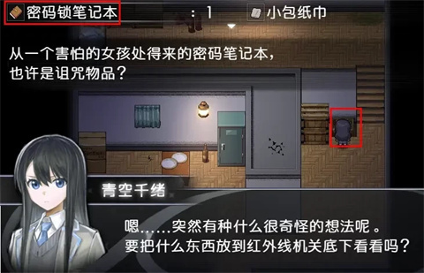 7、调查楼梯旁的药箱,用红外线查看密码锁笔记本