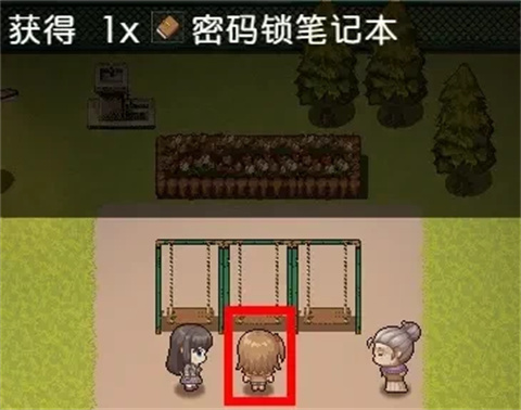 3、到公园右上角,和秋千旁的小女孩对话得到[密码锁笔记本]