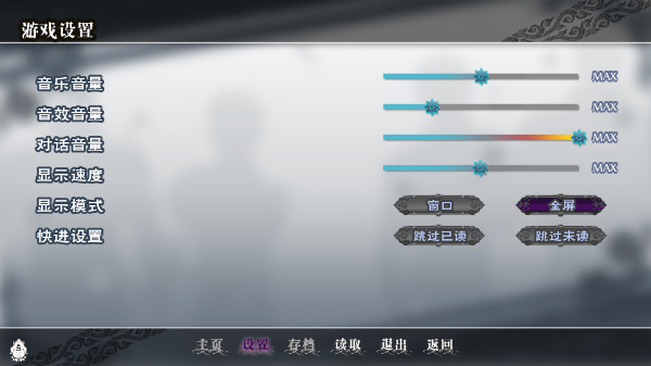 1、进入游戏我们先进入“游戏设置”。其中可对游戏内的显示速度、音量、音乐、显示模式等进行自定义的设置
