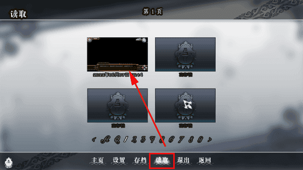 5、相应的,下次游戏时进入主页我们需要选择到“载入游戏”并且选择读取的存档进度,如下图所示