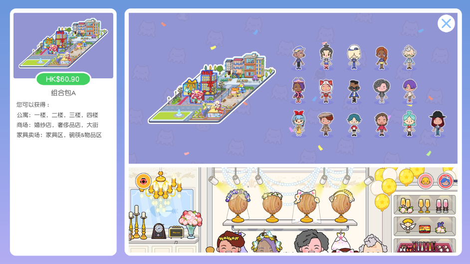 米加小镇古风版更新啦!打扮角色,去餐厅,假装自己在烤,在你的公寓里举办睡衣派对,或者在街上漫步。每个场景都充满了互动对象,衣柜可以打开,在冰箱里吃饭,厕所可以用水冲洗,甚至可以打开灯。这种互动式设计为城市提供了像玩具屋一样的真实纹理。