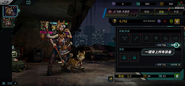 7、也可以回到大厅,将英雄的装备进行穿戴,还可以对英雄进行升级品级,这样战斗力会更高;