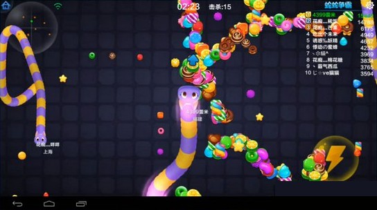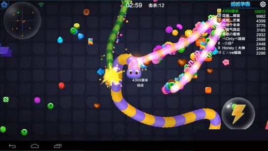 2. 包围压制战术:长度足够时,可将小蛇圈进自己的身体内部,等待其自主撞死,轻松收获糖果奖励;