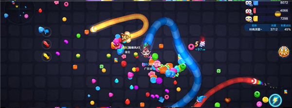 1、发育期:在游戏的前一分钟蛇蛇们都很短,击杀获得的分数很少而加速还要浪费分数,本身长度也不够无法对敌人形成有效的威胁。尝试击杀是可以的,但是更重要的是发育,吃闪亮的冰激淋块能让你迅速长大!
