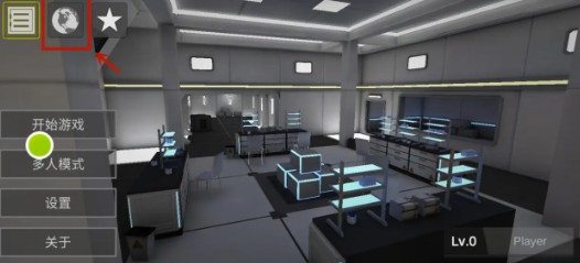①在开始【多人游戏】之前,我们先点击右上角第二个图标的【地球】