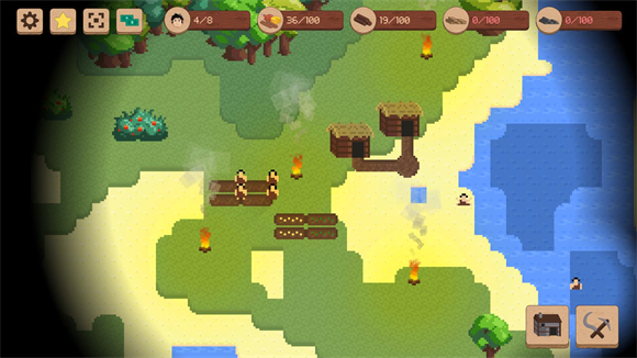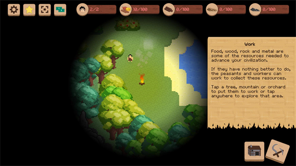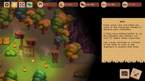 3、然后点击旁边的镰刀与锤头来指挥工人去砍树或者收集食物。