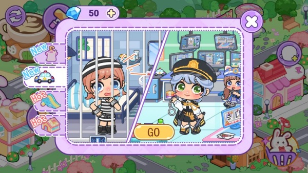 2.你可以为自己选取各种道具,比如服装、车辆、玩具等等,然后点击“GO”按钮。