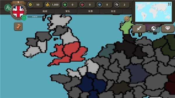 2、在初始界面可以选择你想要操控的国家,每个国家都有独特的特色与优势;