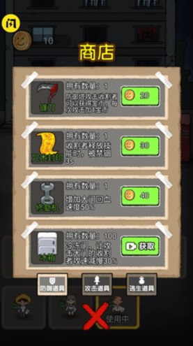 6、找个没人的房子开始躺着发育,获得金钱来升级门和武器;