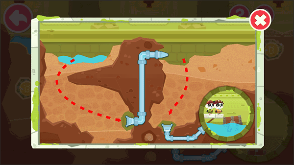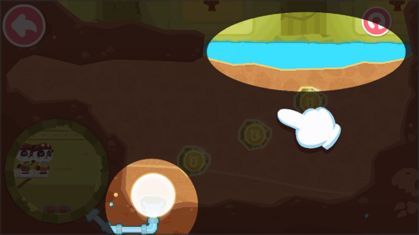1、下载安装宝宝巴士奇妙寻宝冒险,进入首关后,首要目标是将水源成功导入主水管;