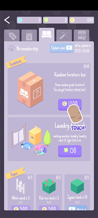 2、在商品列表中找到心仪物品(如“升级地毯”),点击【升级】即可解锁新功能。