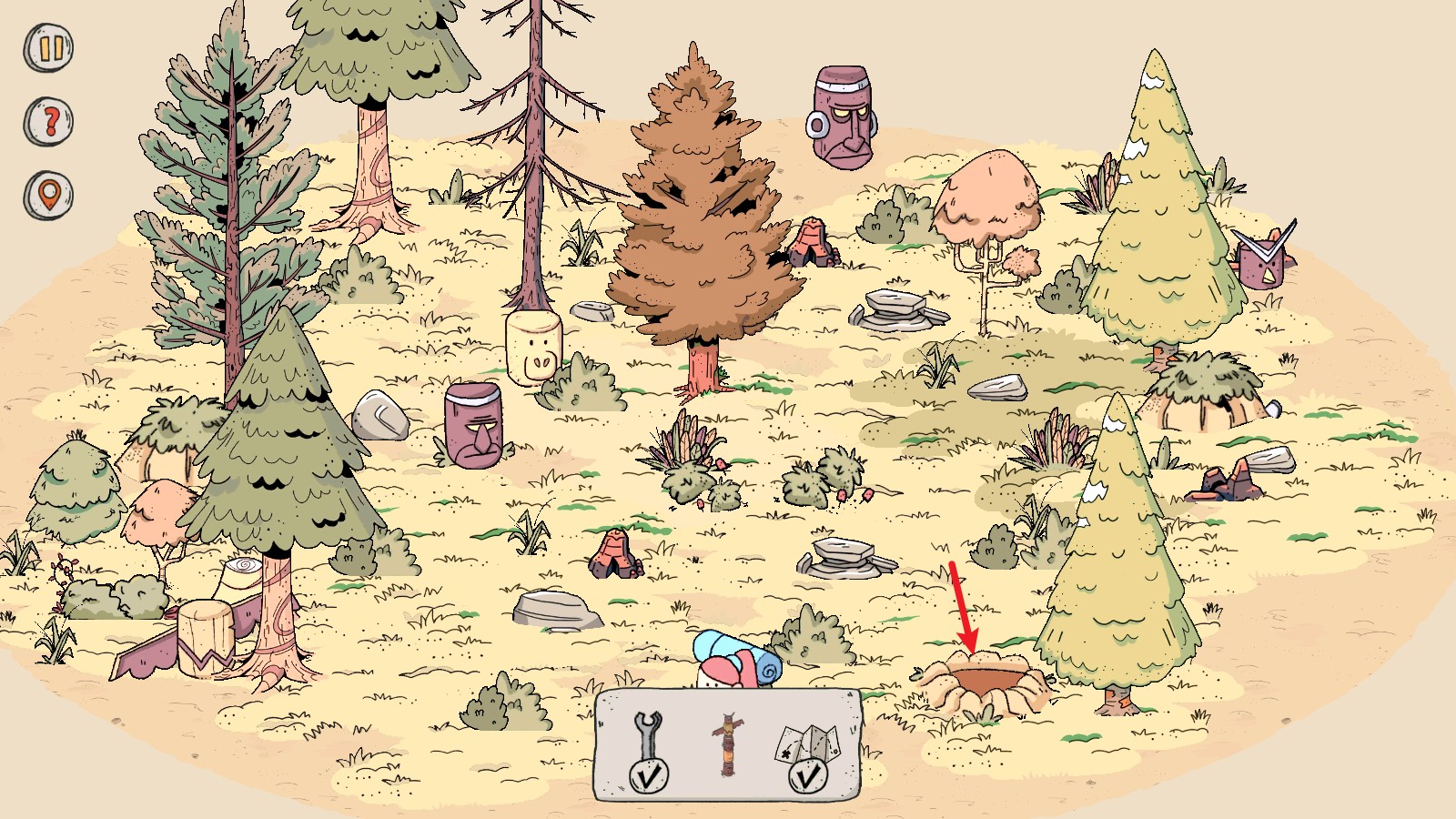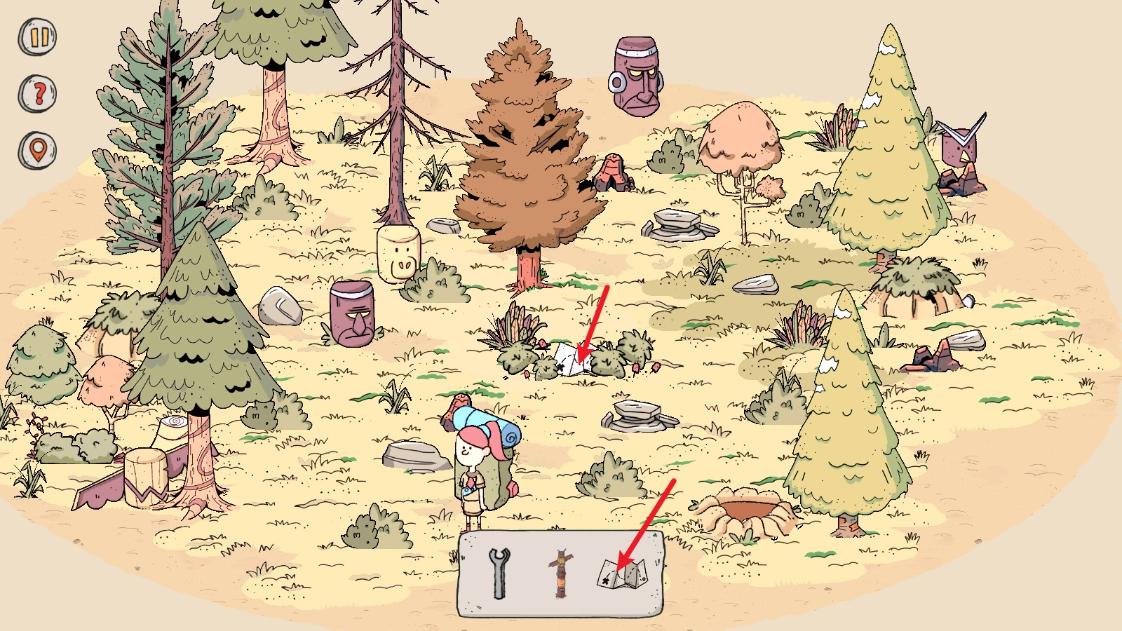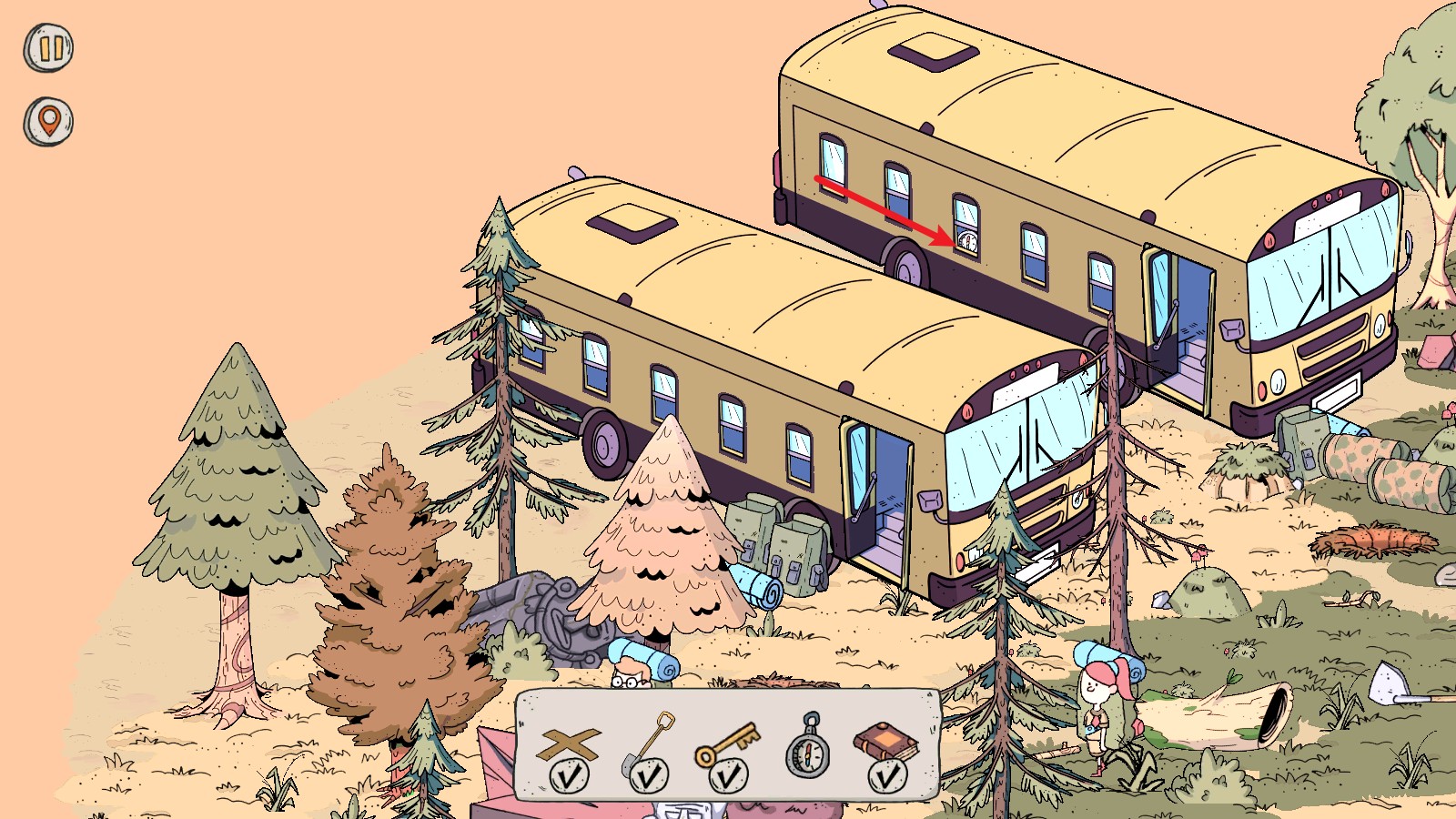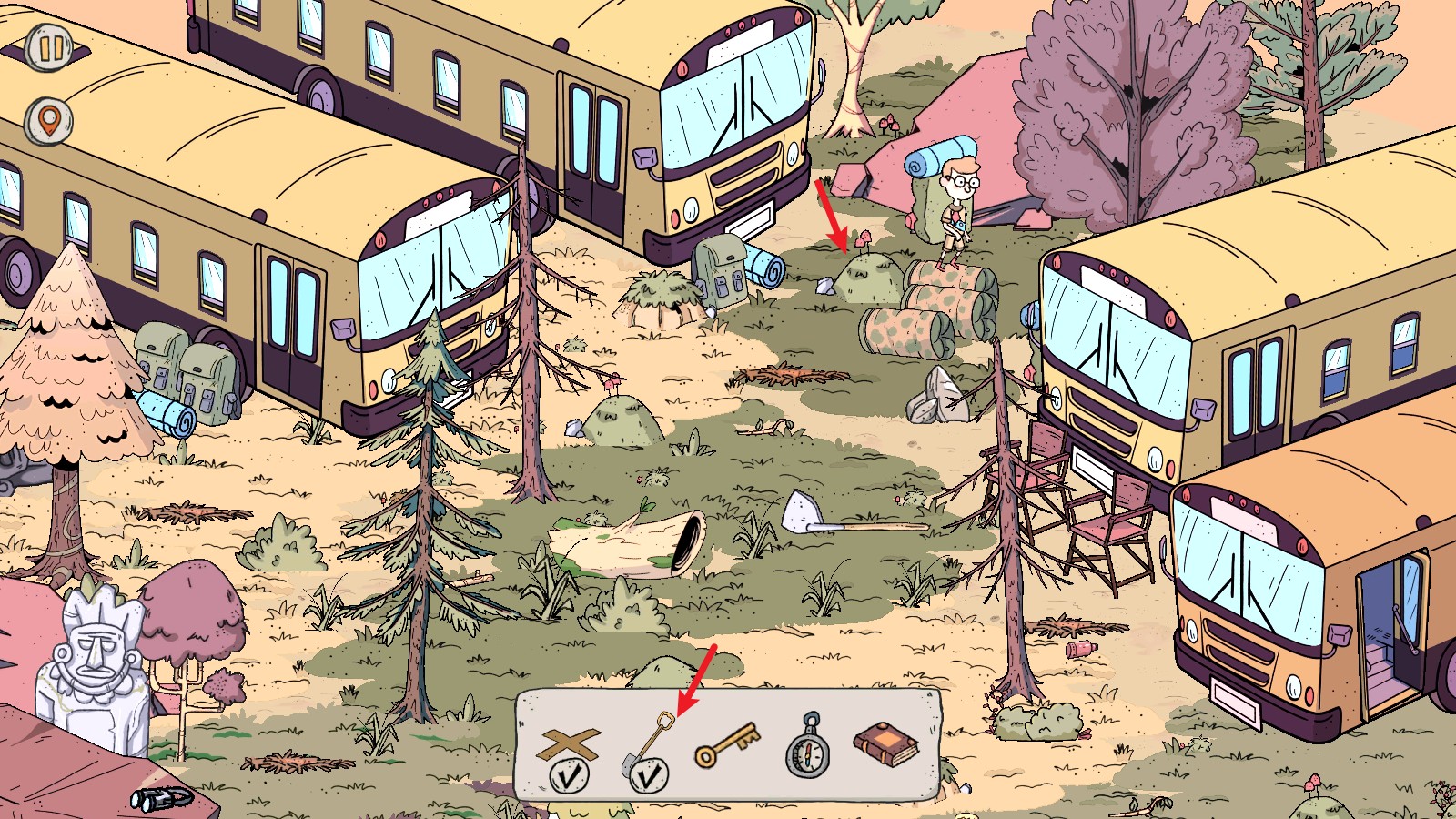 4、来到下一个场景,我们需要找到五件物品,首先点击这里的草丛可以找到这个标记。
