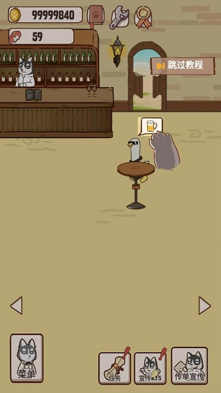 刚开始营业酒吧内空荡荡的啥也没有,先买张桌子好让顾客能够有地座,在主界面中,点击菜单,