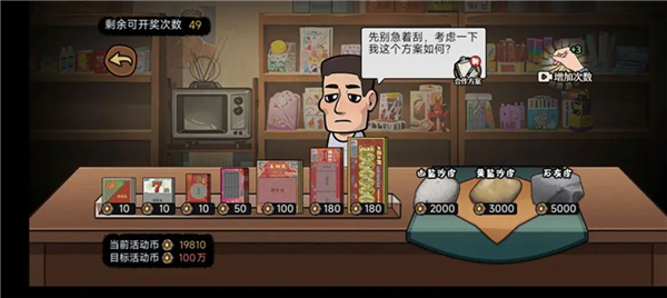 前期我们通过买一百八的刮刮乐,快速刷二十万以上的启动资金资金,并且刷出来合作方案,在所有点合作方案里面,我们只需要两种合作方案,其他乱七八糟的方案我们都不需要;