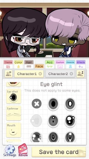 2、选定主题后,点击【character1】或【character2】,分别为两个角色更换装饰,打造个性化形象。