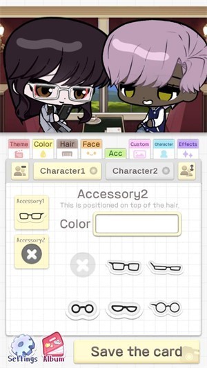 6、点击【acc】更换角色佩戴的饰品,如帽子、眼镜、耳环等,增添个性细节,丰富形象。