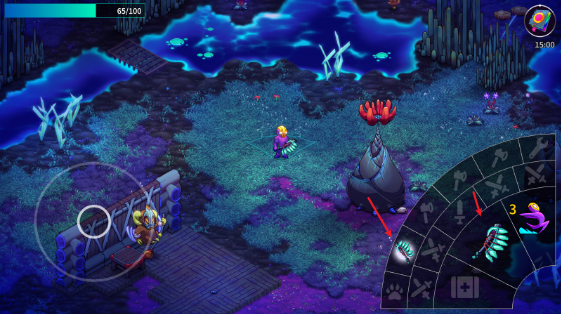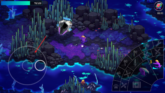 2、游戏中通过左侧的摇杆来控制人物进行移动。