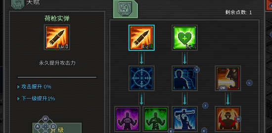 2、天赋系统:每次升级可以获得天赋点,用于升级天赋。建议大家的升级路线是荷枪实弹——精准——愤怒——狂野——内伤(眩晕都行),到这时候你们应该就自己能想明白该点什么了。