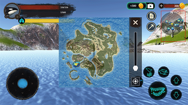 点击右上角地图,可以查看周围的生物位置及完整的海域信息。