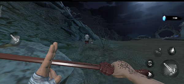 这里有三个小怪比较好打,小怪在发现自己时会有一段空闲时间,在这段时间内使用桃木剑进行攻击,如果没打死边打边退,看到小怪抬手攻击时闪避即可