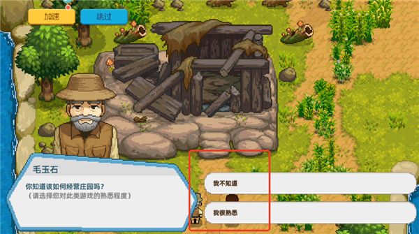 4、青梅竹马走后,就轮到奶牛镇的镇长来给你上新手课了,你可以选择熟悉度,熟悉则教程简单,不熟悉则教程详细。