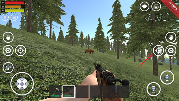 3、然后掏出武器,点击瞄准即可开火(一般都是石斧,想要其它武器需要自己打造);