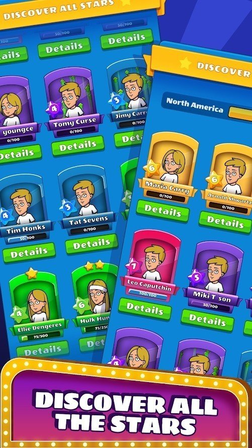 明星特工名人大亨是适合全年龄段玩家畅玩的模拟经营类养成游戏,在游戏中你将会成为一名娱乐公司的老板,你要去招募更多的明星,把他们培养成巨星,不停的做任务获得丰厚的奖励,解锁更多更好的明星,扩大自己的产业规模。随着玩家不停的做任务获得奖励,玩家的产业也将变得更强大。