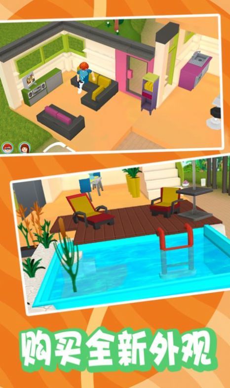 一个可以修饰房屋建筑风格的模拟游戏。 玩家可以根据自己的喜好进行设计。