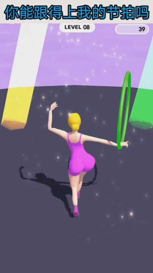 1、玩家在地图中跟着音乐一起行动起来,成为一个呼啦圈运动员在规定的地方不断的移动。