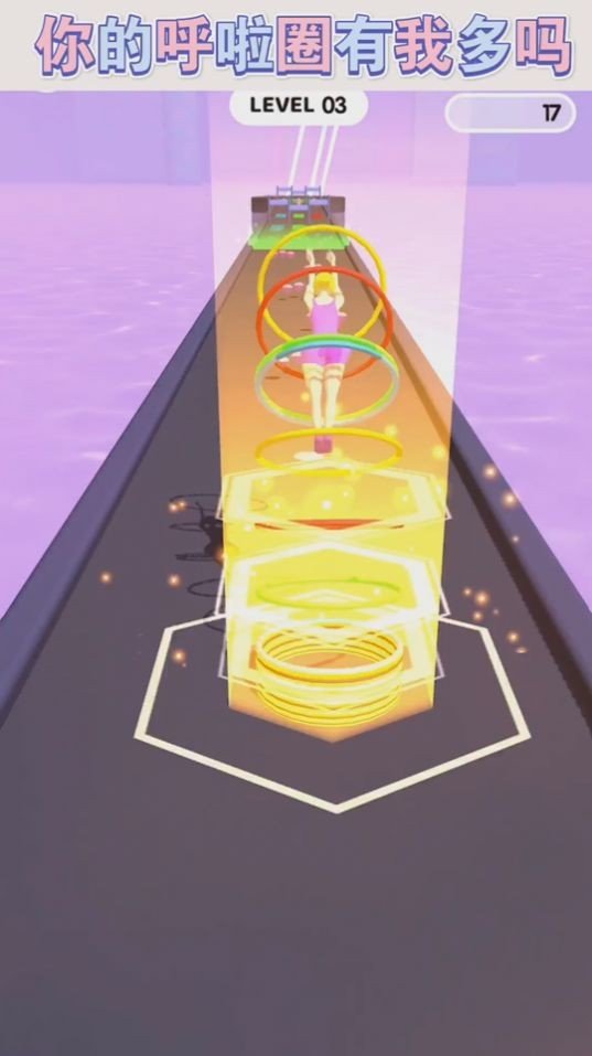 1、非常炫酷的闯关玩法,加入了很多彩虹一样的颜色特效,这些颜色取决于你捡到的呼啦圈;